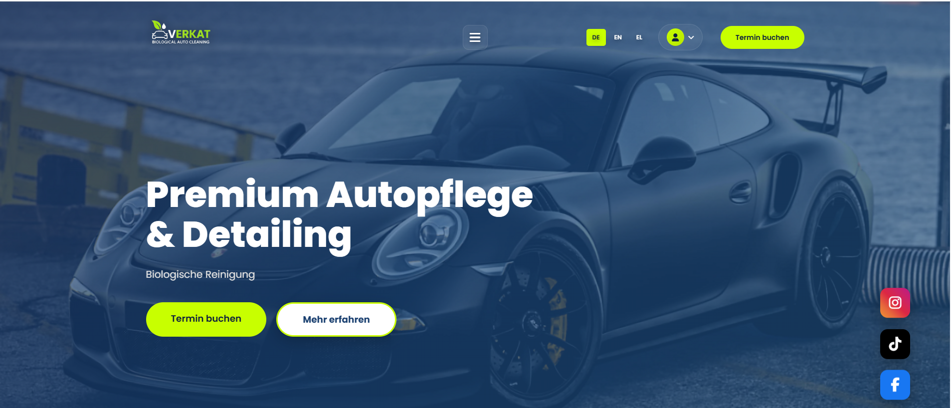 Ιστοσελίδα για auto detailing service με gallery, services showcase, booking system και contact forms. Professional design που επιδεικνύει την ποιότητα των υπηρεσιών.